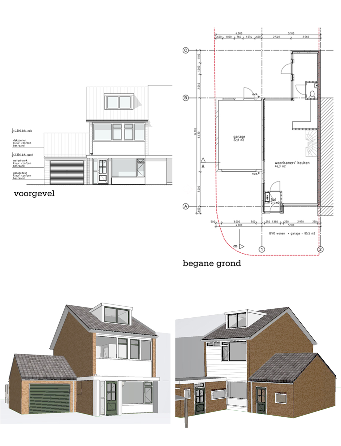 Voor deze hoekwoning in Vianen hebben wij de bouwkundige tekeningen en omgevingsvergunning verzorgd. Het project omvat een aanbouw aan de zijgevel met een hellend dak. Bij het ontwerp hebben wij de maximale afmetingen aangehouden volgens het bestemmingsplan, om ervoor te zorgen dat de verbouwing in overeenstemming is met alle geldende voorschriften en wensen van de opdrachtgever.